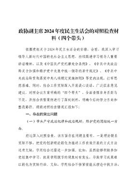 政协副主席 2024 年度民主生活会的对照检查材料(四个带头).docx