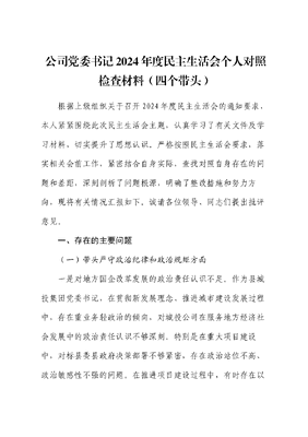 公司党委书记2024年度民主生活会个人对照检查材料(四个带头).docx