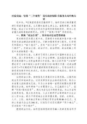 经验交流:坚持“三个聚焦”+筑牢政治保障+在服务大局中挑大梁.docx