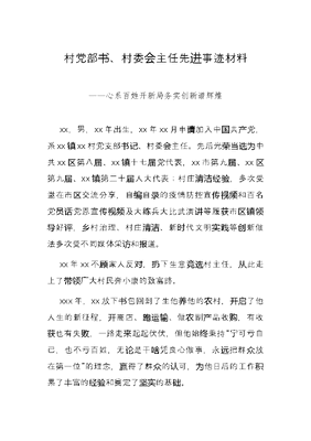 村党部书、村委会主任先进事迹材料——心系百姓开新局务实创新谱辉煌.docx