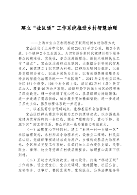 第一批全国乡村治理典型案例丨上海市宝山区:建立“社区通”工作系统 推进乡村智慧治理.docx
