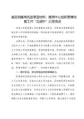 县区档案局先进事迹材料:围绕中心创新管理档案工作“三提升”凸显亮点.doc