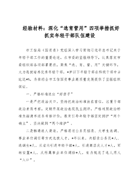 经验材料:深化“选育管用”四项举措抓好抓实年轻干部队伍建设.docx