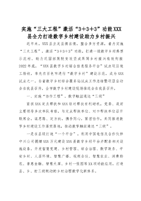 实施“三大工程” 激活“3+3+3”功能 XXX县全力打造数字乡村建设助力乡村振兴.docx