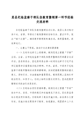 某县纪检监察干部队伍教育整顿第一环节经验交流材料.docx