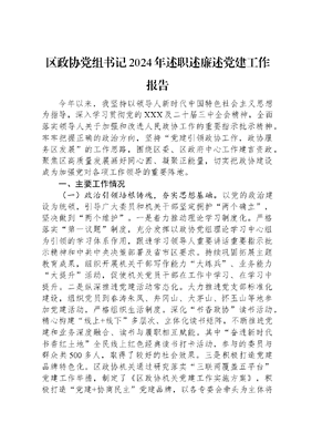 区政协党组书记2024年述职述廉述党建工作报告.docx