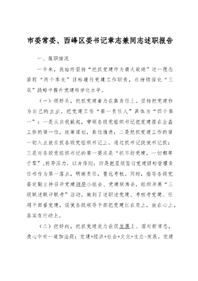 市委常委、西峰区委书记章志兼同志述职报告.docx
