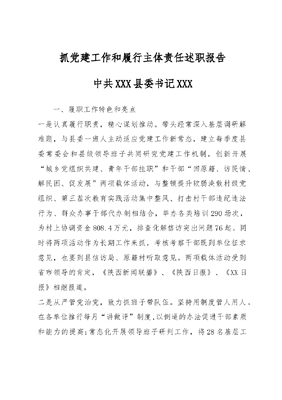 抓党建工作和履行主体责任述职报告--中共XXX县委书记.docx