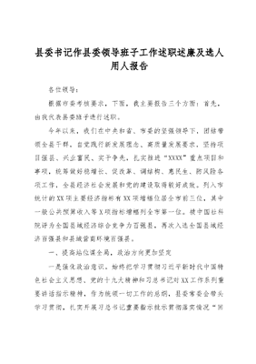 县委书记作县委领导班子工作述职述廉及选人用人报告.docx