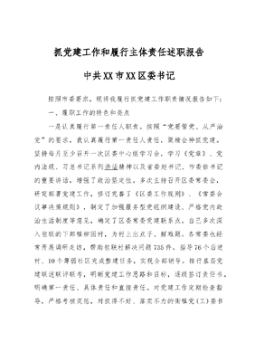 抓党建工作和履行主体责任述职报告--中共XX市XX区委书记.docx