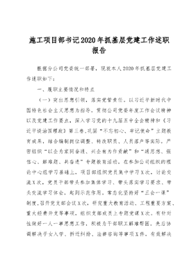 施工项目部书记2020年抓基层党建工作述职报告.docx