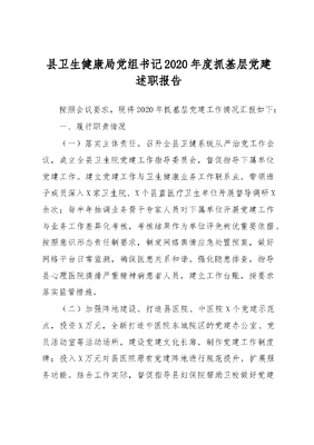 县卫生健康局党组书记2020年度抓基层党建述职报告.docx