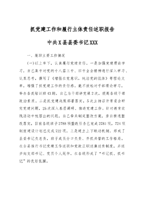 抓党建工作和履行主体责任述职报告--中共X县县委书记.docx