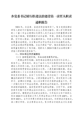 乡党委书记履行推进法治建设第一责任人职责述职报告.docx