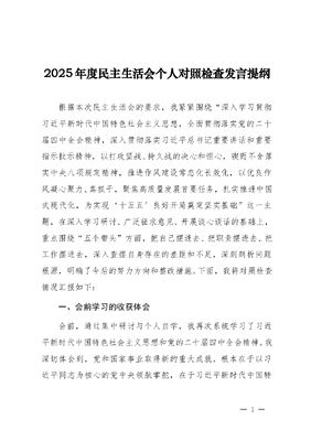 党员干部2025年度民主生活会“五个带头”对照检查发言提纲(通用精品,4900字).doc