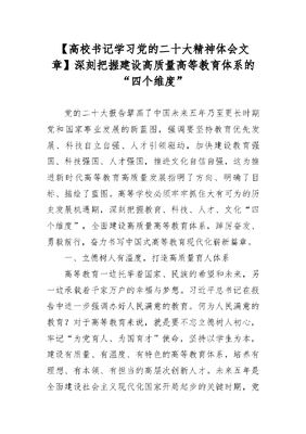 高校书记学习党的二十大精神体会:深刻把握建设高质量高等教育体系的“四个维度”.docx