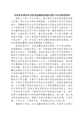 以基本培训为牵引推进边疆民族地区党校工作高质量发展.docx