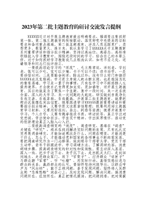 2023年第二批主题教育的研讨交流发言提纲.doc