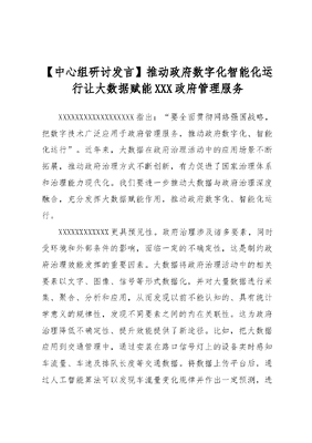 【中心组研讨发言】推动政府数字化智能化运行让大数据赋能+政府管理服务.docx