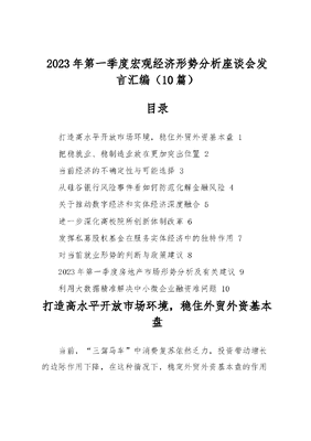(10篇)2023年第一季度宏观经济形势分析座谈会发言汇编.docx