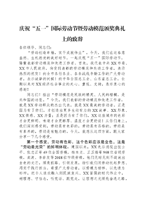 庆祝“五一”国际劳动节暨劳动模范颁奖典礼上的致辞.docx