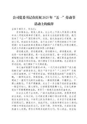 公司党委书记在庆祝2025年“五一”劳动节活动上的致辞.docx