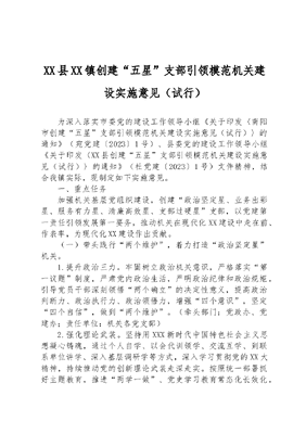 XX县XX镇创建“五星”支部引领模范机关建设实施意见(试行).docx