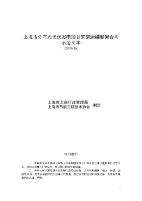 上海市分布式光伏发电项目安装运维服务合同2016版.doc