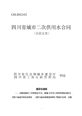 四川省城市二次供用水合同(示范文本)(CH-2012-02).doc