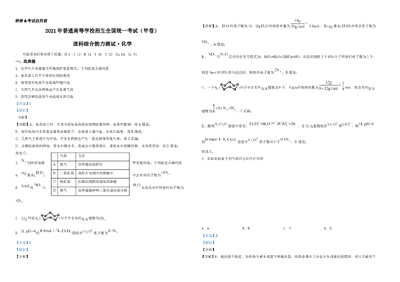 2021年高考全国甲卷化学试题(解析版)A3.doc
