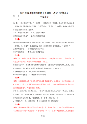 2015年高考安徽卷(文综历史部分)(含答案).doc
