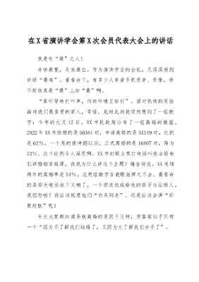 在X省演讲学会第X次会员代表大会上的讲话.docx