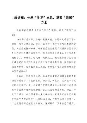 演讲稿:传承“学习”家风,凝聚“强国”力量.docx
