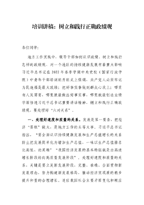 牢固树立正确政绩观心得体会、党课、研讨发言汇编
