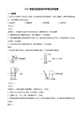 精品解析:四川省达州市2021年中考化学试题(解析版).doc