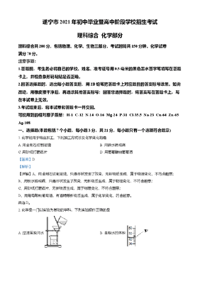 精品解析:四川省遂宁市2021年中考化学试题(解析版).doc