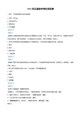 精品解析:云南省2021年中考化学试题(解析版).doc