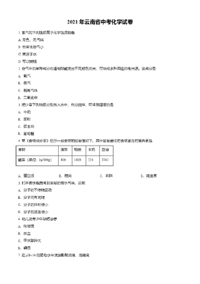 精品解析:云南省2021年中考化学试题(原卷版).doc