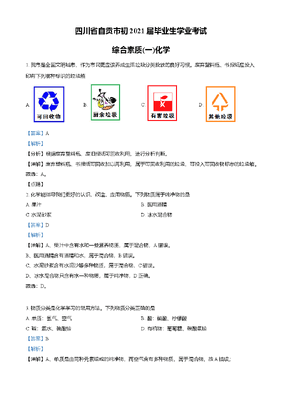 精品解析:四川省自贡市2021年中考化学试题(解析版).doc