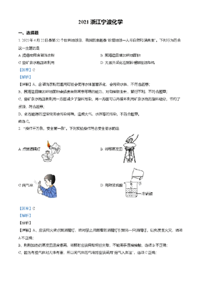 精品解析:浙江省宁波市2021年中考化学试题(解析版).doc