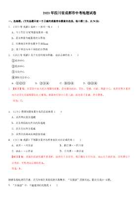 精品解析:2021年四川省成都市中考地理真题(Word版,解析).docx