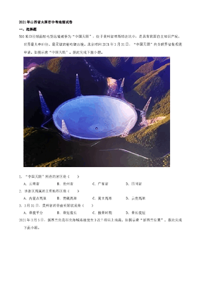 精品解析:2021年山西省太原市中考地理真题(word,解析版).docx