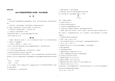 2010年上海市高中毕业统一学业考试化学试卷(word解析版).doc