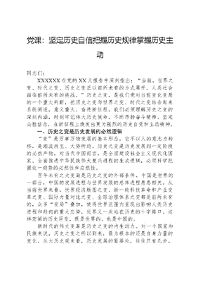 党课:坚定历史自信,把握历史规律,掌握历史主动.docx