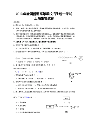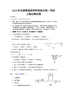 2013年上海市高中毕业统一学业考试生物试卷(原卷版).doc