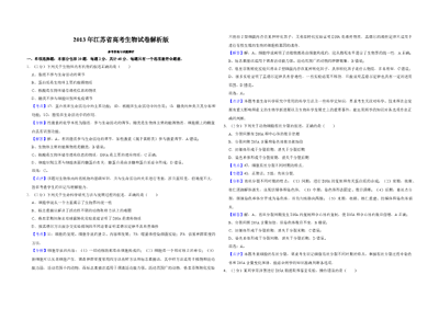 2013年上海市高中毕业统一学业考试生物试卷(word解析版).doc