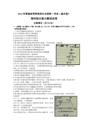 2013年高考重庆高考理综生物试题含答案word版.doc