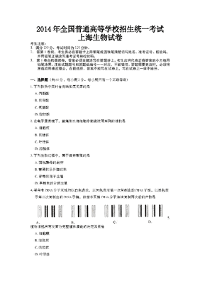 2014年上海市高中毕业统一学业考试生物试卷(word解析版).doc