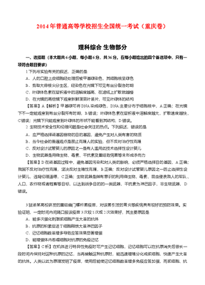 2014年高考重庆高考理综生物试题含答案word版.doc