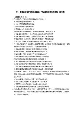 2014年四川省高考生物试卷及答案.doc